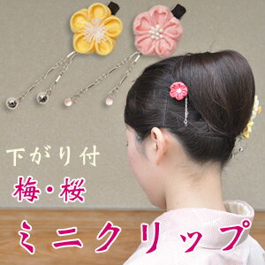 【スーパーSALE期間中10%OFF!】【鈴下がり付】梅&【ビーズ下がり付】 桜 ミニクリップ【三歳】【七歳】七五三 髪飾り 三歳 七歳 日本髪 ショート つまみ細工 簡単 アレンジ 子供 出産祝 赤ちゃん かんざし