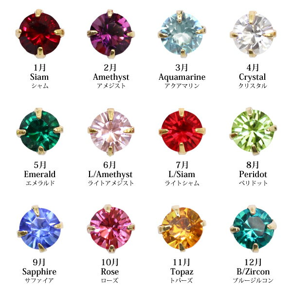 【楽天スーパーセール 半額】【ラストセール】18金(K18/18K)ポスト スタッドピアス 誕生石カラー スワロフスキー 一石 金属アレルギー 日本製